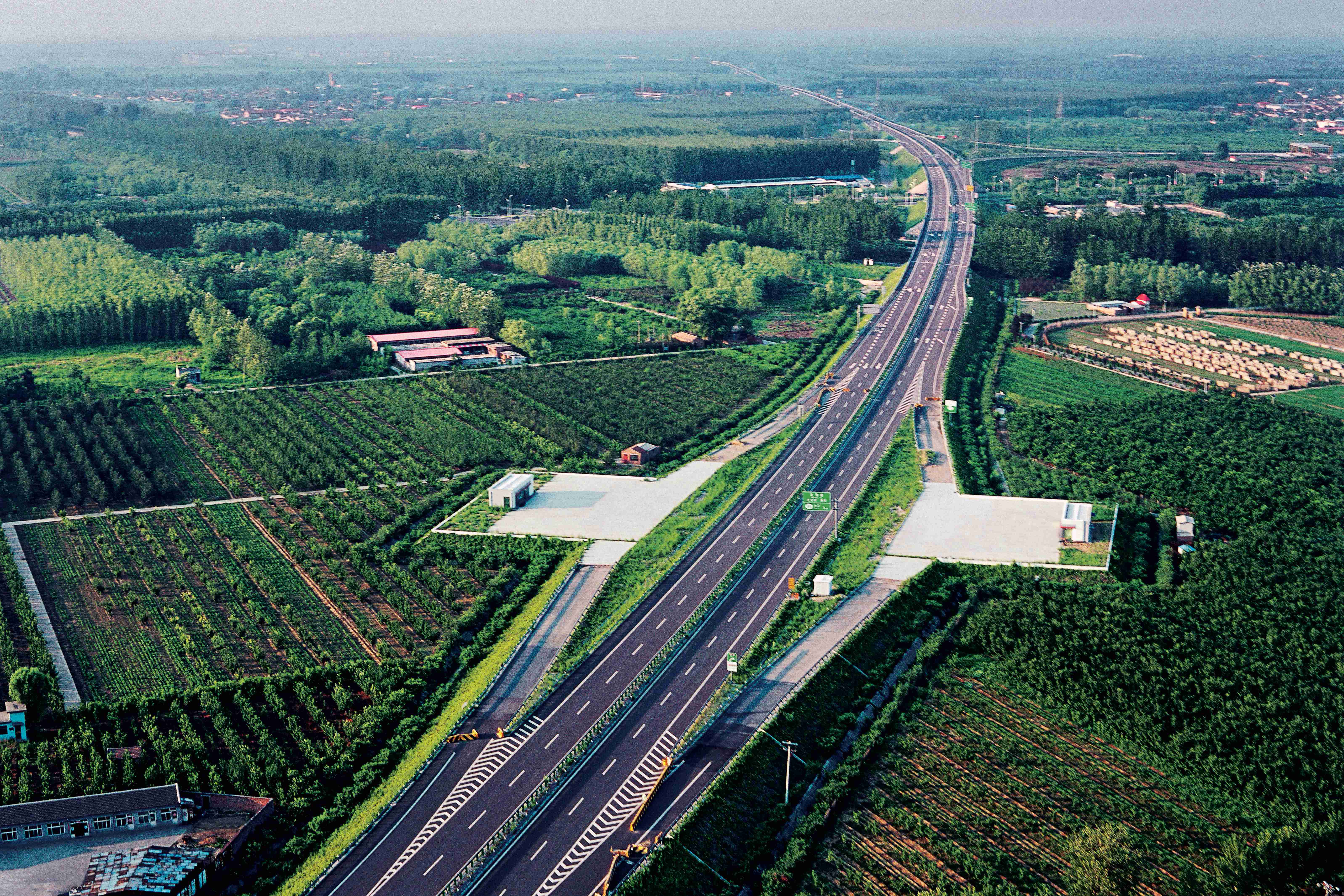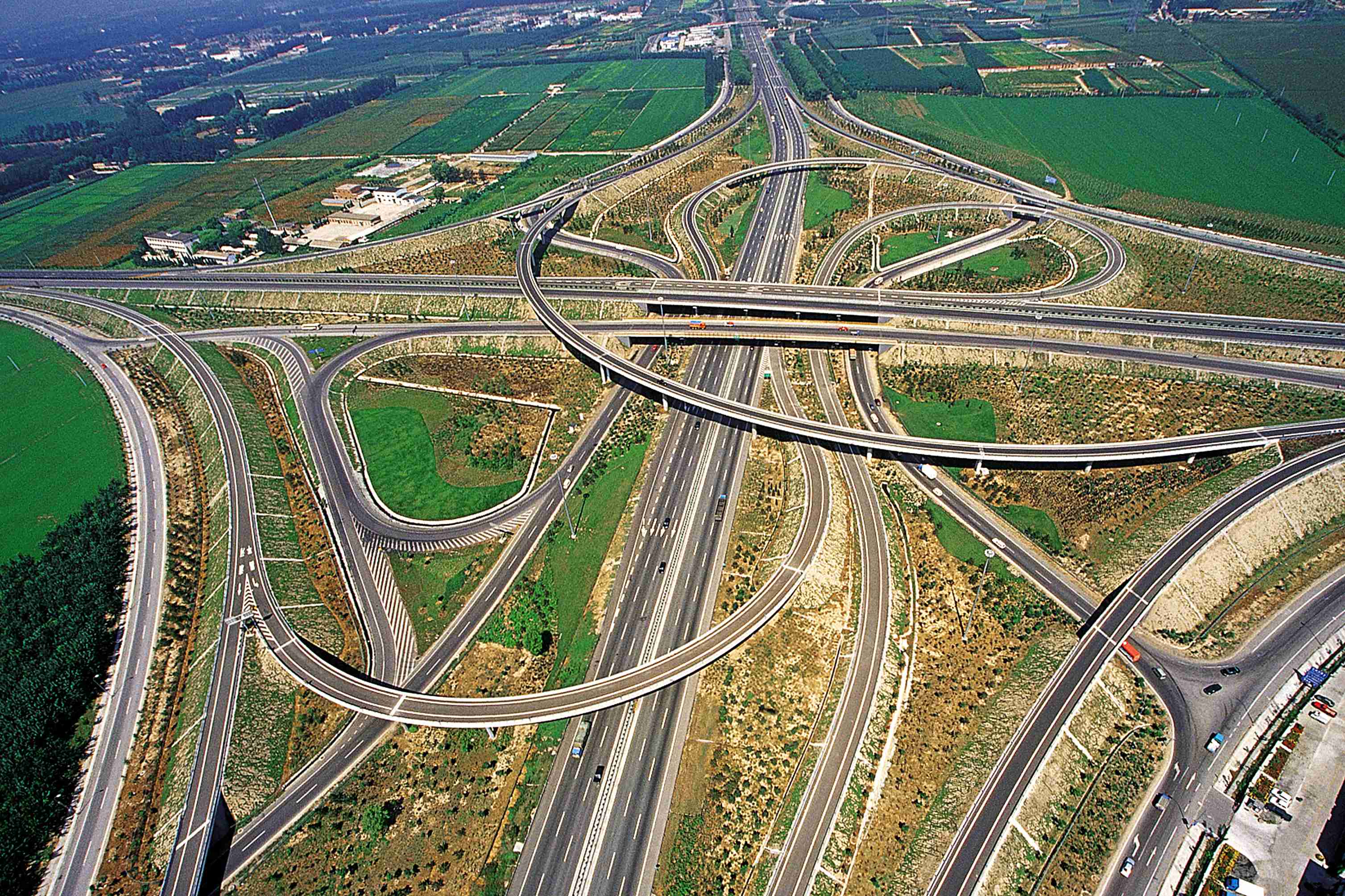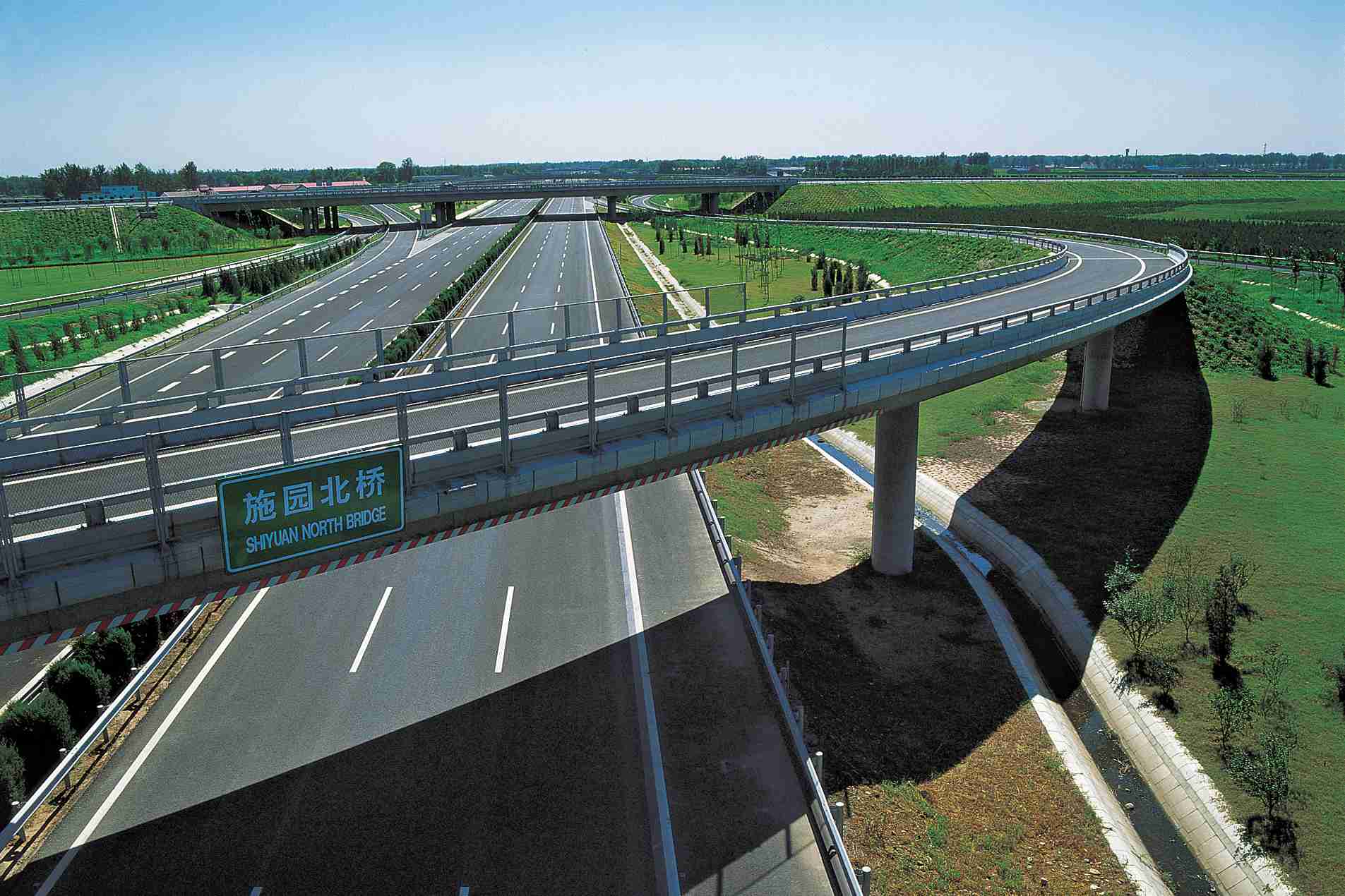 六環(huán)路全長(zhǎng)200公里,設(shè)計(jì)行車(chē)速度為100公里/小時(shí),雙向四車(chē)道加連續(xù)停車(chē)帶,工程分為通州—馬駒橋段、馬駒橋—大莊段、通州—昌平段、黃村—良鄉(xiāng)段、西沙屯—寨口段、良鄉(xiāng)至寨口段。
